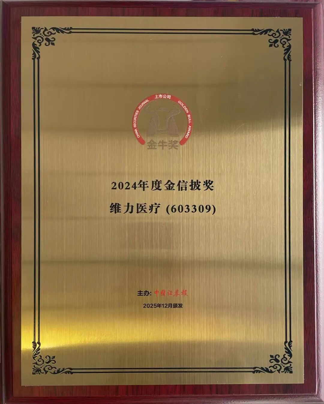 近日,维力医疗在资本市场接连获得多项荣誉,包括上海证券交易所信息披露工作评价A级、中国证券报金牛奖“金信披奖”、上海证券报上证鹰·金质量“持续成长奖”。这些奖项是对公司规范运作、信息披露质量与持续成长能力的肯定。