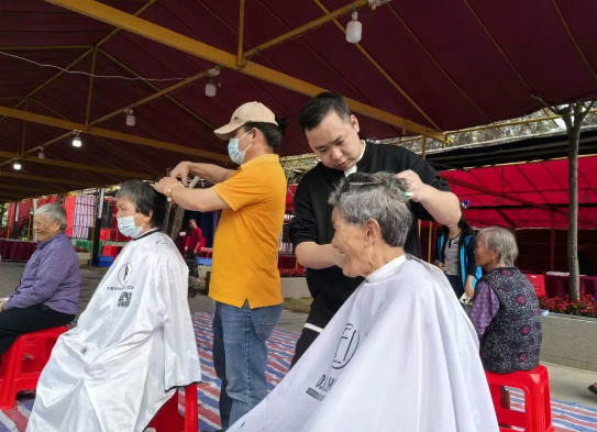 活动上午,长者们整齐就座,等候来自番禺美业美妆联合会的专业理发师修剪发型。理发师们根据每位长者的需求,娴熟操作、轻柔打理,原本略显凌乱的头发变得整齐利落,老人们的精神面貌焕然一新。