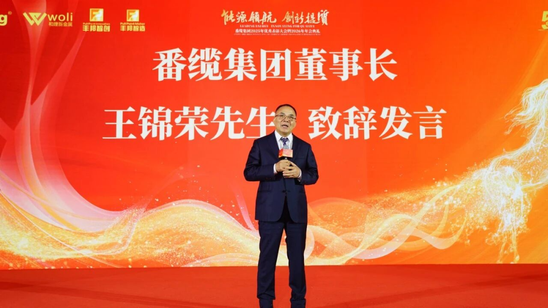集团董事长王锦荣首先向来宾朋友和全体番缆家人致以诚挚的祝贺词。回顾2025年,集团深耕制造业,以稳促进,收获了双增长业绩,这份成绩离不开各方支持与员工并肩拼搏。