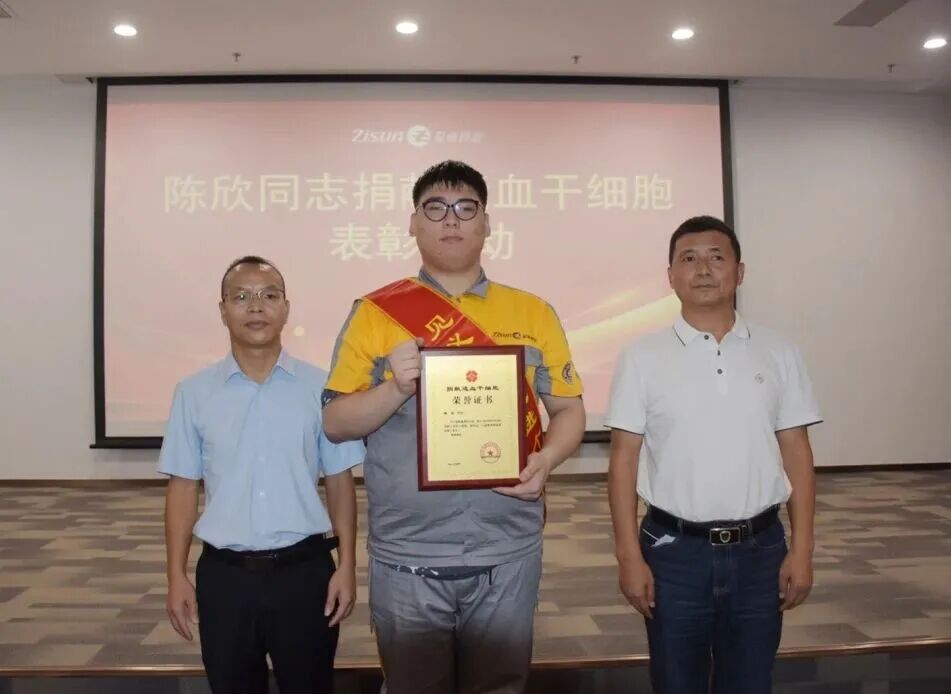 9月29日,在陈欣完成造血干细胞捐献休养一周返岗之际,公司举行陈欣同志捐献造血干细胞表彰活动。番禺区中心血站、大石街道相关领导,公司领导和各部门代表员工近百人齐聚一堂,共同见证这一温暖而庄重的时刻,向捐献造血干细胞的陈欣同志致以最崇高的敬意。