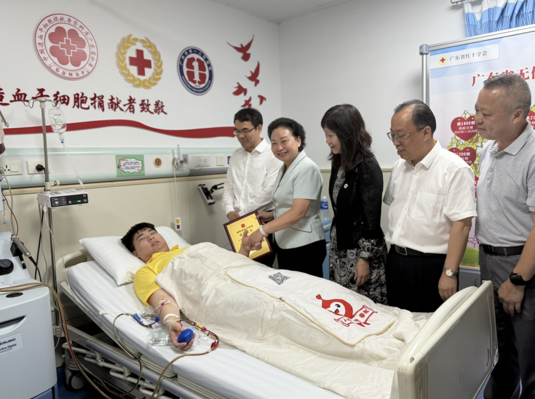 广东省红十字会党组书记林彬、广州市副市长赖志鸿等领导慰问造血干细胞捐献者陈欣