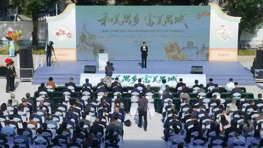 11月21日,“和美禺乡 富美禺城”—— 番禺区“五好两宜”和美乡村试点试验项目成果汇报暨“百千万工程”产业赋能大会在沙湾街紫坭岛举行。