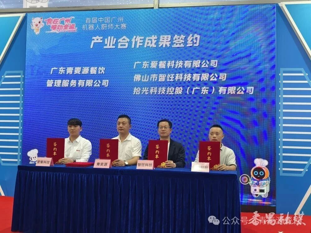 荣耀既是里程碑,也是新征程的起点。就在中国团餐产业发展大会同期,在广州国际美食节主会场,青麦源集团作为智能餐厨产业链的重要推动者,积极参与“标准化引领智能餐厨及预配菜融合高质量发展”主题活动,并完成了一系列具有深远意义的战略合作签约:公司与广东爱餐科技、佛山市智饪科技、拾光科技控股、广东宜仕乐人工智能商厨等领先企业签署产业合作协议,共同推进智能烹饪技术与传统餐饮服务的深度融合。公司与广东省机器人协会金融专业委员会签订金融合作协议,为企业发展与技术革新注入强劲资本动力,助力智能餐厨产业实现“技术+资本”的双轮驱动。