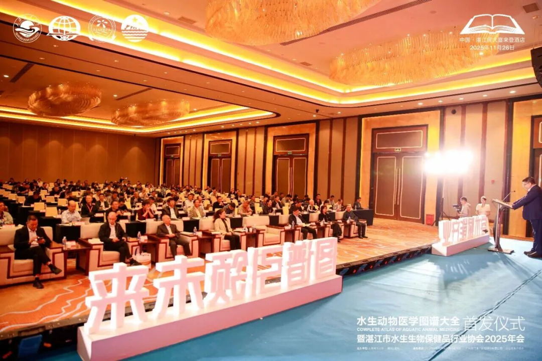 2025年11月26日,《水生动物医学图谱大全》首发仪式暨湛江市水生生物保健品行业协会2025年会在广东湛江民大喜来登酒店隆重举行,协会众多会员单位代表齐聚大会,秉持对行业发展的热忱与期许,共忆年度发展历程,共绘未来美好蓝图。