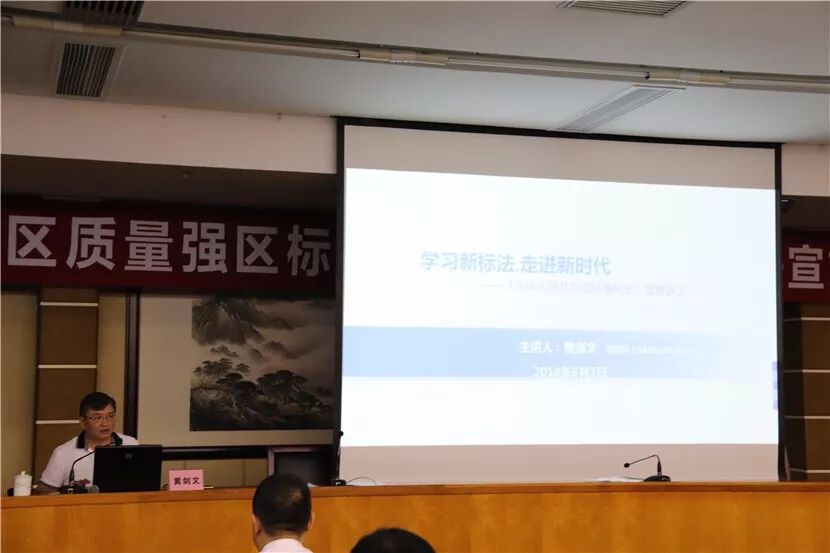 2018年1月1日起,新《标准化法》正式施行。这标志着我国标准化工作朝着科学化、法制化方向又迈进了一大步。会上,黄剑文处长结合案例,以深入浅出的语言,从修订《标准化法》的背景、新标法的特点、新旧标法的变化、如何贯彻实施新标法等四个方面进行宣贯解读。修订后的《标准化法》有五大特点:标准的范围更宽、市场化程度提高、制标权力下放、各方职责明晰、处罚柔性化和自信化。