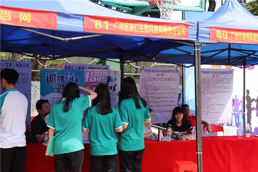 7月6日上午,番禺区新造职业技术学校在校内成功举行番禺区促进新成长劳动力就业校园巡回招聘会。本次招聘会共有100多家名优企业进校“揽才”,为学生提供岗位过千个,吸引了650多名学生入场求职。厂商会也发动了潘高寿药业、骏汇汽车、医家仁等10多家企业参与了本次招聘会。