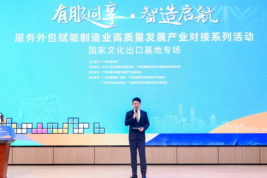 10月29日下午,“有‘服’同享·智造启航”服务外包赋能制造业高质量发展产业对接系列活动(国家文化出口基地专场)在番禺区巨大创意产业园国际会议中心圆满举行。本次活动由广州市商务局主办,广州市番禺区厂商会协办。现场汇聚了150余名来自制造领域上下游及专业服务机构的行业精英,聚焦服务外包与制造业深度融合,为广州灯光音响、珠宝首饰、游艺动漫等特色产业注入数字化转型与国际化的新动能。