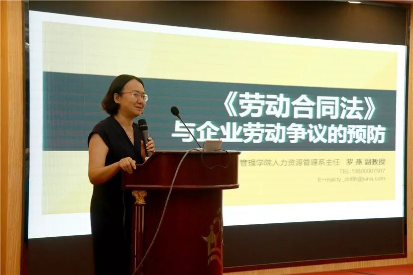 本次讲座邀请了华南师范大学经济与管理学院人力资源系主任、教授罗燕作《<劳动合同法>与企业劳动争议的预防》的专题讲座。罗教授结合案例,介绍了《劳动合同法》的特点和新增的内容,重点对用人单位规章制度建设、建立和办理用工手续的新规定进行了详细的讲解。她建议企业用书面劳动合同、续签劳动合同通知书、劳动合同签收表这三个核心措施来保障企业的合法权益,并通过规范公司规章制度、入职、在职、离职流程和加强招聘风险控制来防范劳工法律风险,在举证过程中慎用电子邮件、证人证言和录像资料。