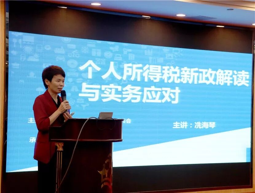 也邀请了广州惠得企业管理咨询有限公司总经理冼海琴作《个人所得税新政解读与实务应对》的专题讲座。冼总解读在社保与个税政策大改下的新政策,帮助更多企业解决最迫切的“社保与个税统一征收”的问题,让企业顺利地找到解决方案。