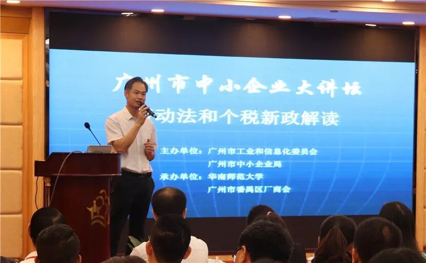 为贯彻落实广州市委、市政府关于促进民营经济发展的若干措施的精神,推动我市中小微民营企业管理人员业务素质提升,9月28日下午,由市工信委主办,华南师范大学和区厂商会承办的2018年广州市中小企业发展大讲坛“劳动法和个税新政解读讲座”在番禺宾馆举行。企业对近期社保与个税政策的新修订表示极大关注,此讲座吸引了我区近450名企业代表参加。